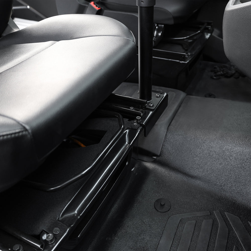High Compatibility: The laptop stand is compatible with Ford Transit 150, 250, and 350 models. Installation is simple—no drilling required; just attach the base bracket to the original co-pilot base track.