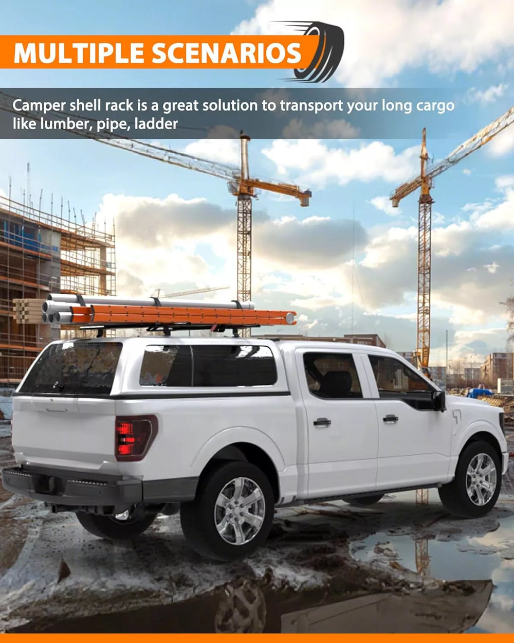 Wide Application: The universal rack system can be installed onto any fiberglass pickup truck topper, cap, or camper shell (drilling required), such as Ford F-series. It also fits vans or trailers, including Ford Transit, Ford Transit Connect, Chevy Silverado, Dodge Ram, etc.