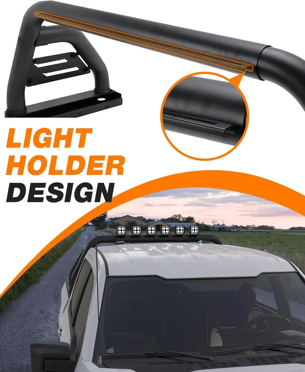 - POWERFUL FUNCTION: The side panels of the truck roll bar can shield the rear window from debris and flying stones during travel effectively.