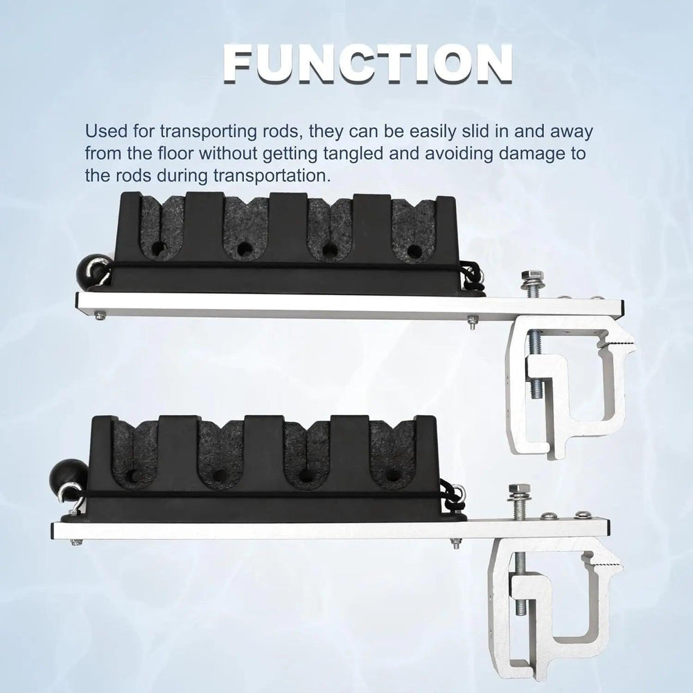 - Function: The Fishing Pole Rack for Truck is used for transporting rods, easily sliding them in and away from the floor without getting all tangled up and having to worry about damaging anything while transporting them anywhere.