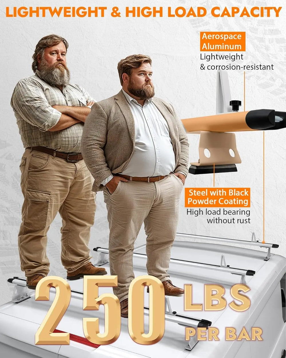 - LONG-LASTING: Ladder rack for van features the rust-free material of aluminum with white powder-coated finish. Stainless steel hardware provide strength and durability, anti-rust and anti-corrosion