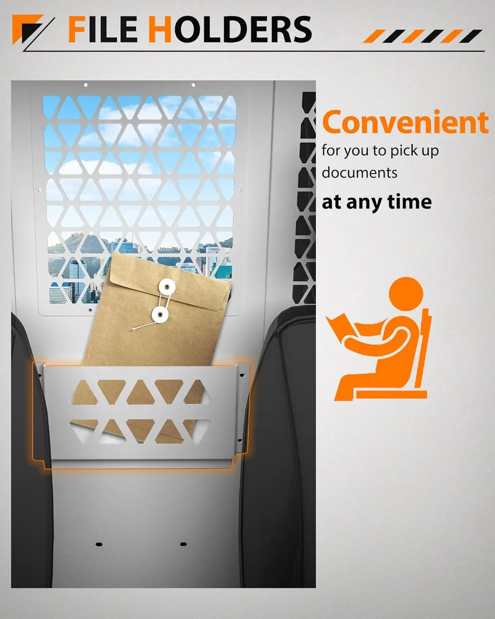 - Safety Insurance: Van bulkhead is made of heavy-duty gauge steel with exceptional strength and resistance to impact, fire, and corrosion. Effectively prevent the cargo from being shifted during transport due to sharp braking, turning or bumping of vehicles, and reduce the mutual collision of goods, so as to protect the safety of goods